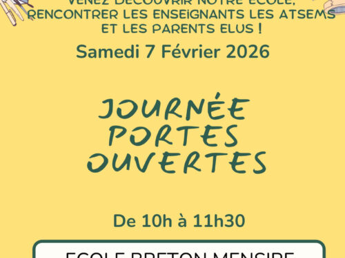 Prochainement Le Groupe Scolaire Breton Mensire organise sa journée porte ouverte le Samedi 7 Février 2026. Venez rencontrer les enseignants, les atsems et découvrir ... Journée Porte Ouverte - Groupe Scolaire Breton Mensire samedi 07 février