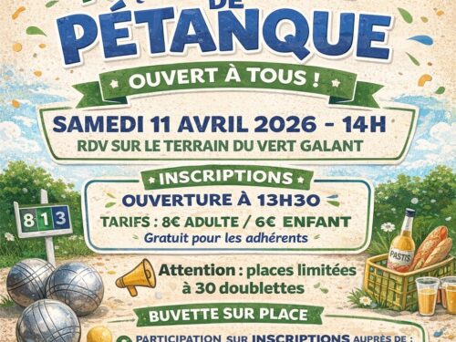 Prochainement Les Boulistes du Lin vous proposent un tournoi de pétanque Samedi 11 Avril dès 13h30 Rendez-vous sur le terrain du Vert ... Tournoi de Pétanque samedi 11 avril